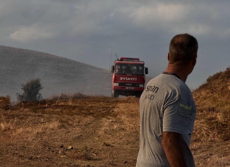 İtfaiye ekiplerinin arazi yangınına müdahalesi sürüyor.