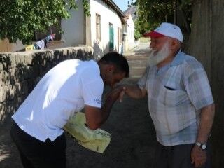 Kocasinan ilçesindeki Oymaağaç hayvan pazarında meydana gelen olayda, besici Orhan Kaya ile kurban almak için pazara gelen 70 yaşındaki Mustafa Ceviz arasında yapılan pazarlıkta, Ceviz’in parmakları incinmişti. Haberi alan besici Orhan Kaya, bugün tatlı alarak parmakları incilen Mustafa Ceviz’i evinde ziyaret etti.