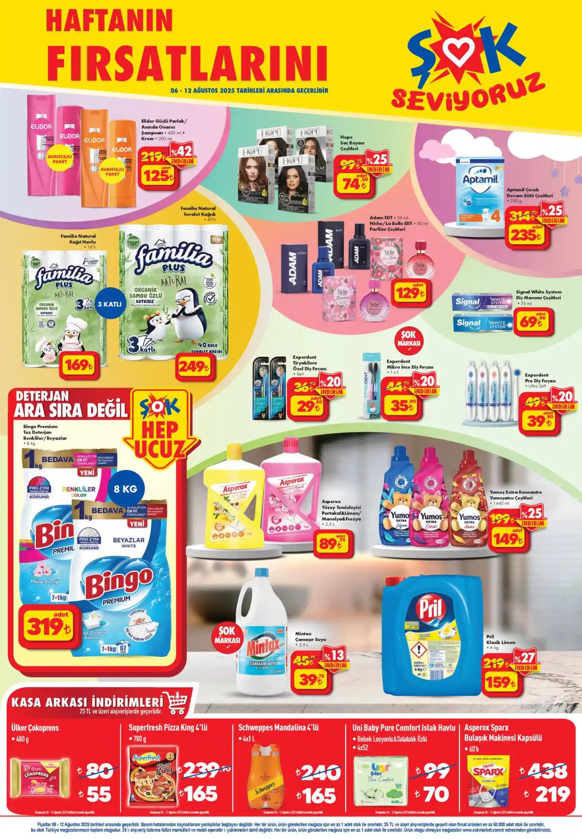 6-12 Ağustos 2025 tarihleri arasında geçerli olacak kampanyalarda, gıdadan temizliğe, kişisel bakımdan yazlık ürünlere kadar geniş bir ürün yelpazesi uygun fiyatlarla raflarda yerini aldı.