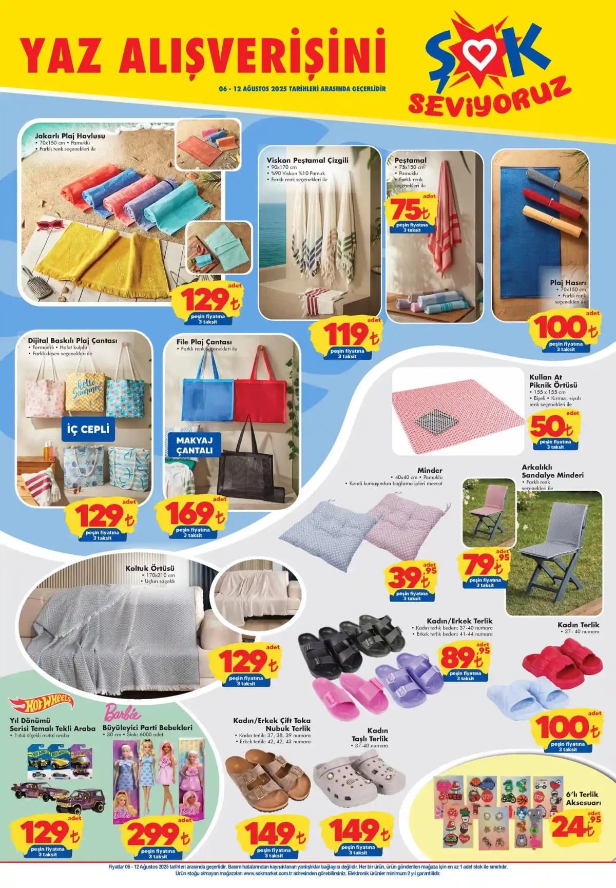 Özellikle yaz tatiline hazırlananlar için düşünülmüş ürünler dikkat çekiyor. Plaj havlusu, plaj çantası, terlik ve mindergibi sezonluk eşyalar, bu hafta ŞOK’ta cazip fiyatlarla satışta.