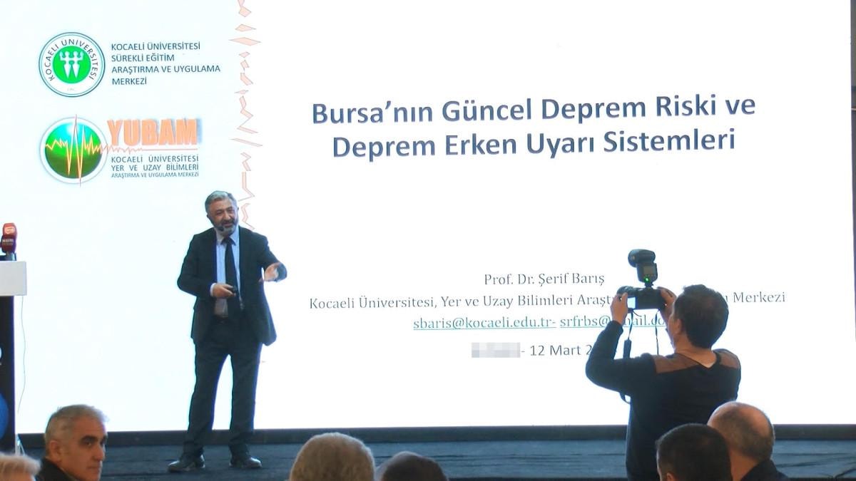 Bursa'da iş insanlarıyla buluşan Kocaeli Üniversitesi Mühendislik Fakültesi Jeofizik Mühendisliği Öğretim Üyesi Prof. Dr. Şerif Barış, 'Bursa'nın Güncel Deprem Riski' başlıklı sunum gerçekleştirdi.