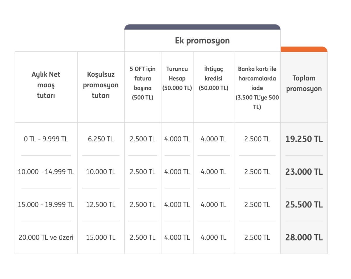 İşte maaşlara göre promosyon tutarları: