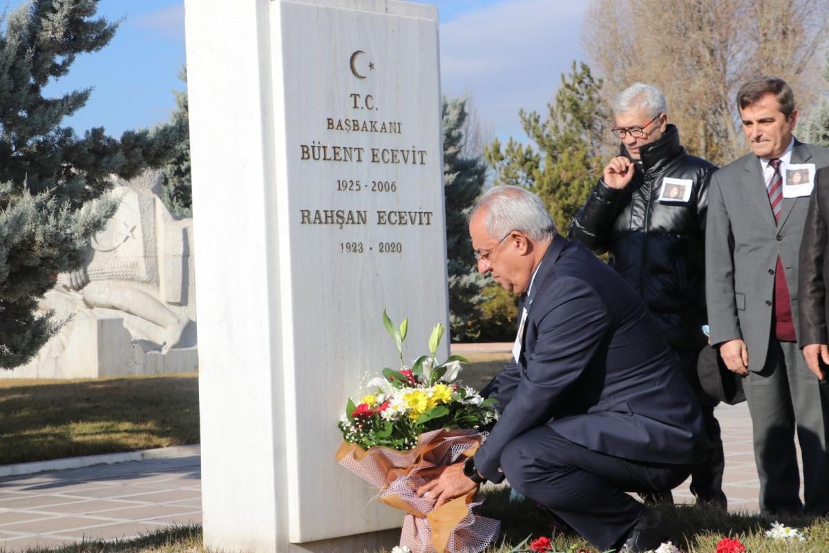 Ecevit çiftinin mezarına karanfil bırakılıp dualar okundu ve saygı duruşunda bulunuldu.