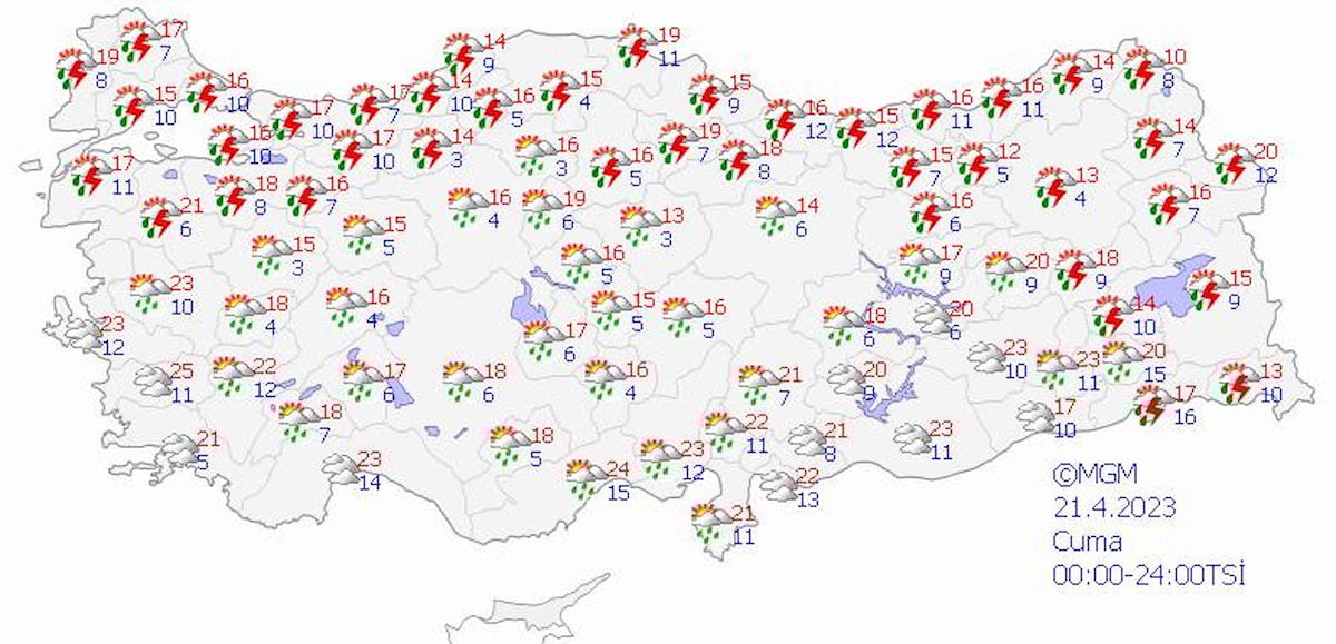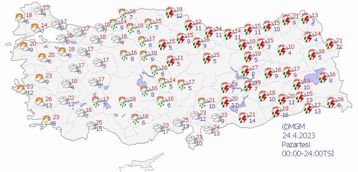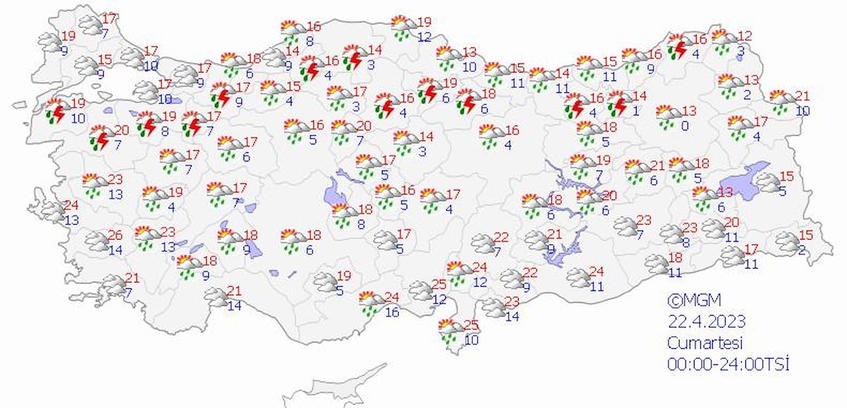 Bayramın birinci gününde kıyı Ege, Batı Akdeniz'in kıyı kesimi, Güneydoğu Anadolu'nun batısı hariç yurdun tamamında yağış bekliyoruz. Bu kuvvetli yağış alanı da iyice Güneydoğu'ya sıkışmış durumda olacak. Hakkari, Van ve Ağrı çevrelerinde yağışların yerel kuvvetli olmasını bekliyoruz. Yağışlar yurt genelinde sağanak ve gök gürültü sağanak şeklinde olacak. Sağanak ve gök gürültülü sağanak kısa sürede büyük miktarda yağış bırakabiliyor. Dolayısıyla sel, su baskını gibi sonuçlar doğurabilir ve gök gürültülü yağış da hasarlar bırakabiliyor, yıldırım, dolu gibi olumsuzlukları var. Vatandaşların bu konularda dikkatli ve tedbirli olmalarında fayda var.