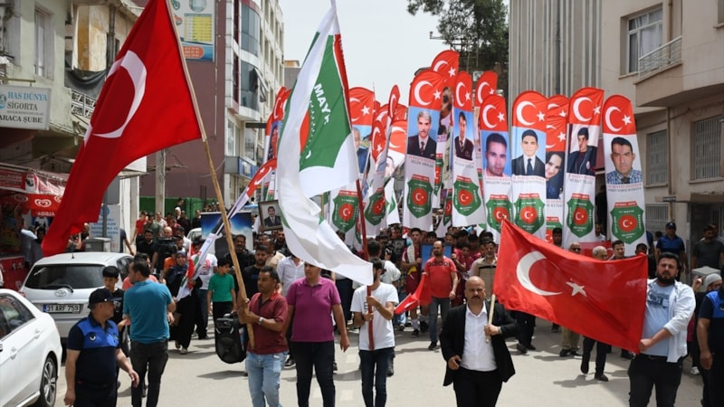 Reyhanlı Belediyesi önünde toplanan, aralarında saldırılarda yaşamını yitirenlerin yakınlarının da olduğu grup, 11 Mayıs Şehitler Anıtı'na kadar yürüdü.