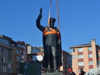 Rize Belediyesi tarafından 15 Temmuz Demokrasi ve Cumhuriyet Meydanı'nın yenilenme projesi için başlatılan çalışma kapsamında Atatürk heykelinin valilik önündeki tören alanına taşınması için ekipler bu sabah işe koyuldu.