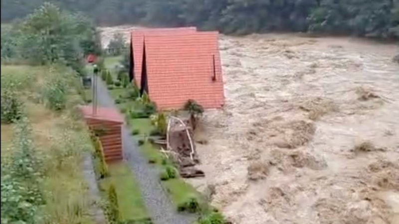 Rize'de etkili olan sağanak, yüksek kesimlerde sele neden olurken, Çamlıhemşin ilçesi Ayder Yaylası yolu üzerinde boş halde bulunan 2 bungalov sele kapıldı.