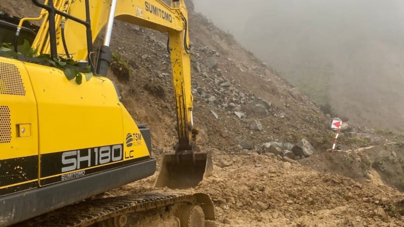 Çalışmaların sürdüğü bölgede yamaçtan kayan toprak kütlesi nedeniyle zor anlar yaşanırken iş makinesi operatörü yaptığı manevrayla olası faciadan son anda kurtuldu.