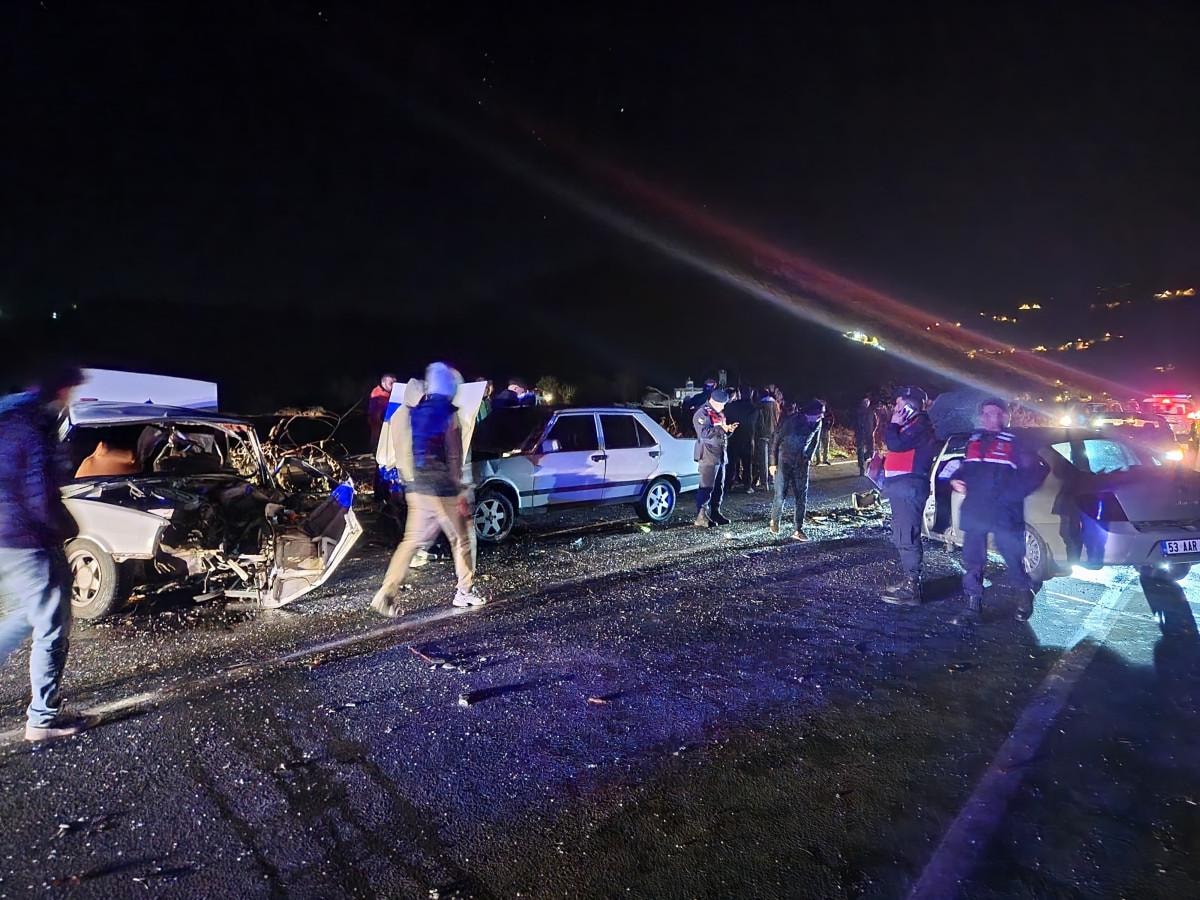Rize'de Ardeşen-Çamlıhemşin Karayolu'nun 5. kilometresinde Ardeşen ilçesine bağlı Elmalık Mahallesi’nde bu akşam 22.00 sıralarında, K. K. yönetimindeki 53 AAR 471 plakalı araç, şoförü henüz teyit edilemeyen 55 H 2300 ve A. B. kontrolündeki 53 AAE 971 plakalı araçla çarpıştı.