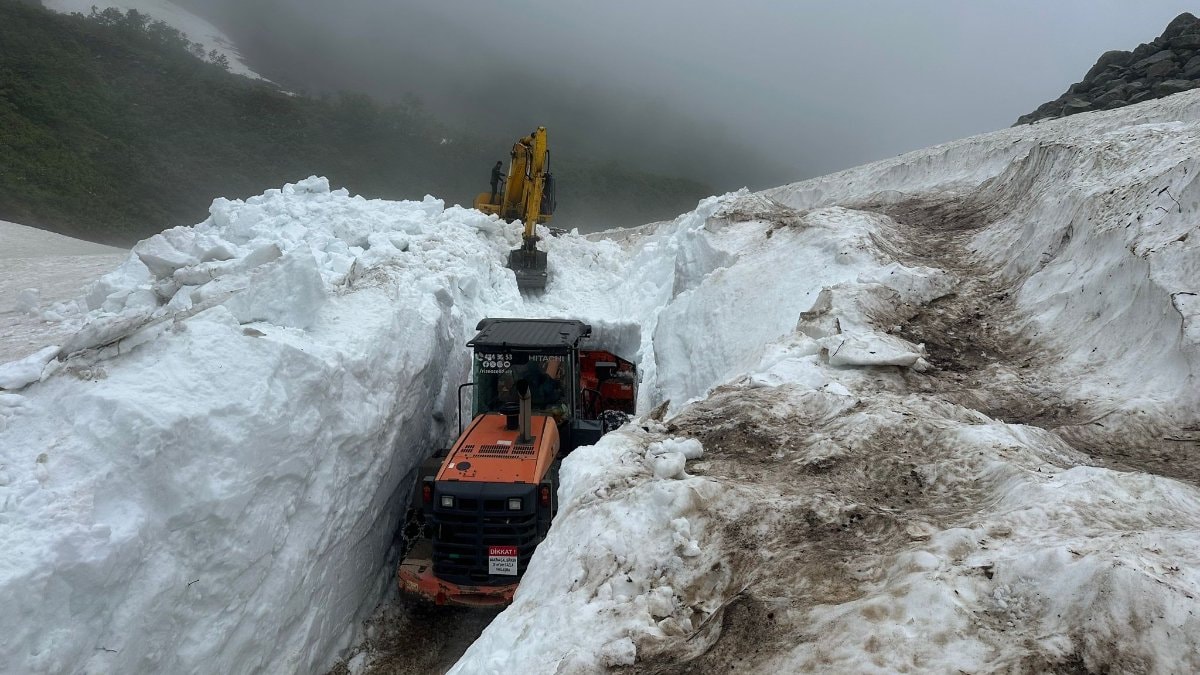 Rize'nin yüksek rakımlı yaylalarında, kış ve bahar aylarında düşen ancak hâlâ erimeyen kar ve çığ yığınlarının temizliği sürüyor. Doğu Karadeniz’in sert geçen kışından en çok etkilenen illerden biri olan Rize'de, yaz mevsimi gelmesine rağmen bazı bölgelerde metrelerce kar kalınlığı duruyor.