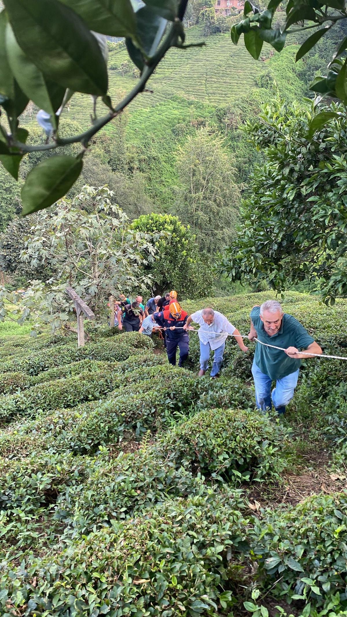 Bölgeye ulaşan ekiplerce mahsur kaldığı bahçeden kurtarılan kadın sedye ile patika yoldan taşınarak ambulansa ulaştırıldı.