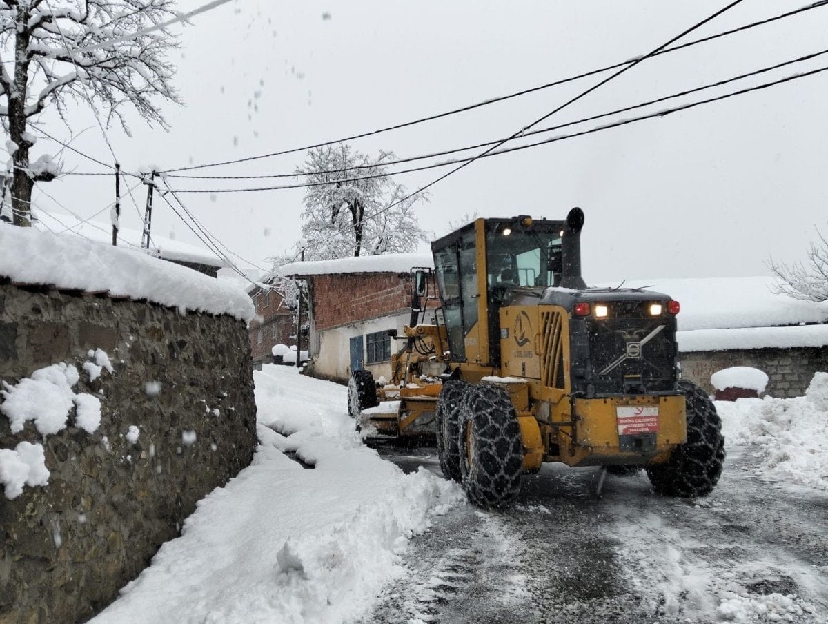 Burada da kar temizleme çalışması için 7 personel ve 3 iş makinesinden oluşan ekip görevlendirildi.