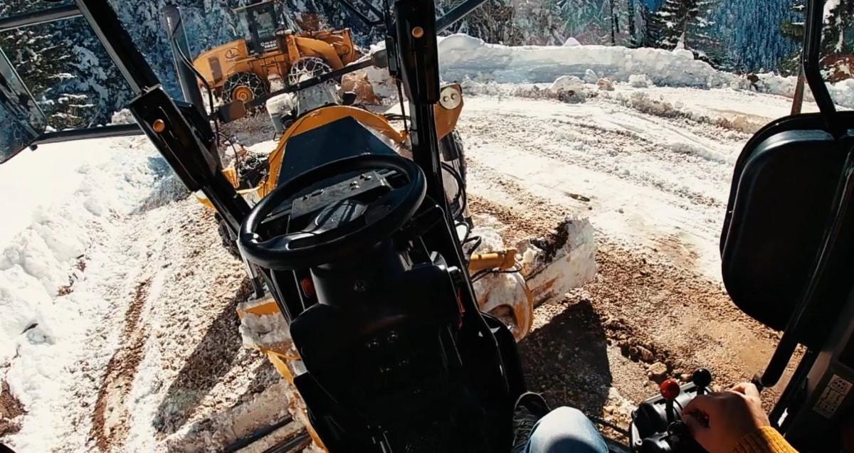 Kar küreme aracını kullanan personellerden biri, İkizdere'nin köy yolu manzarası eşliğinde, Karadeniz ezgilerini dinleyerek yolları açtığı anları görüntüledi.