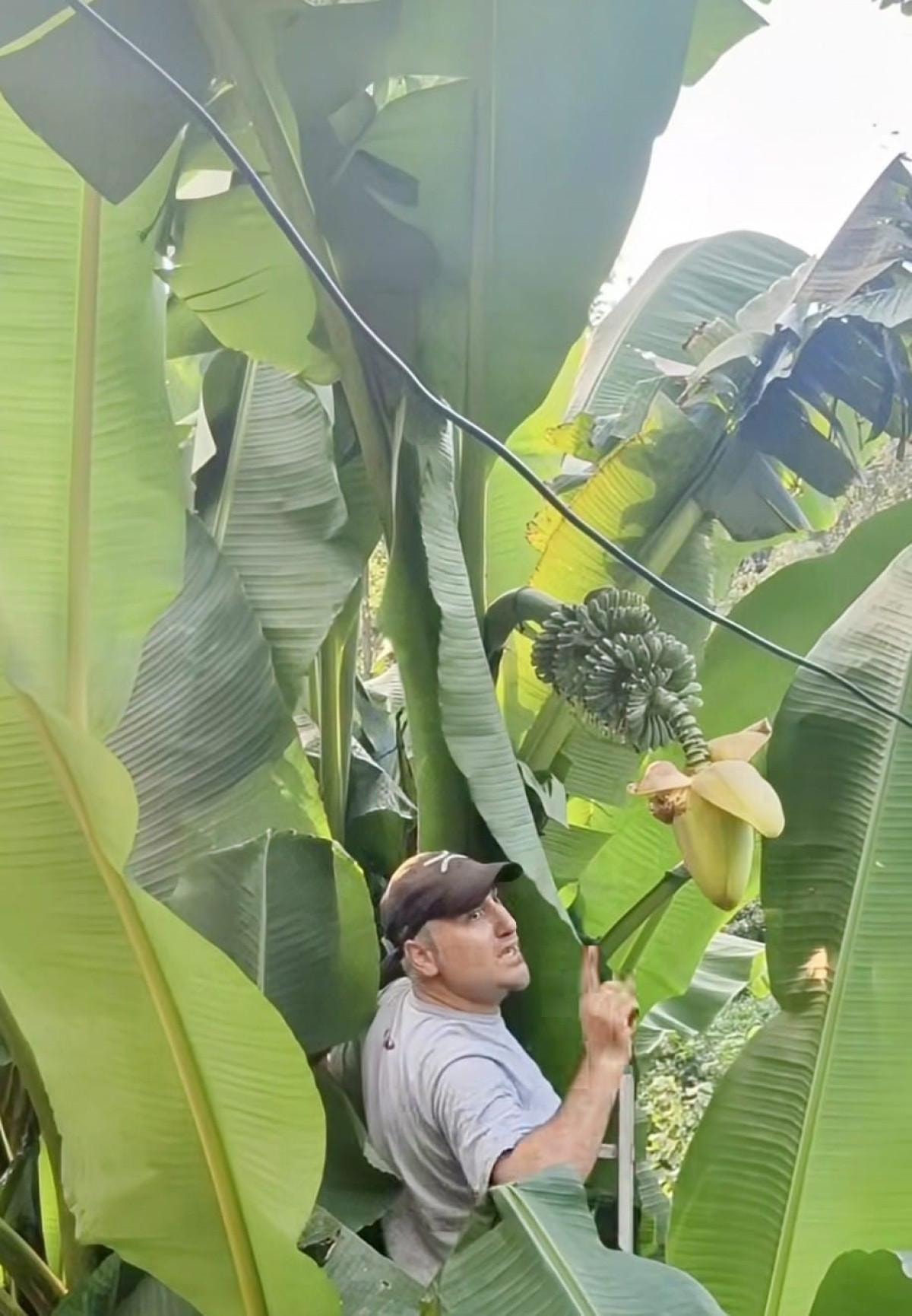 Yaklaşık 2 yıl önce diktiği muz ağaçları metrelerce uzadı.