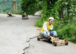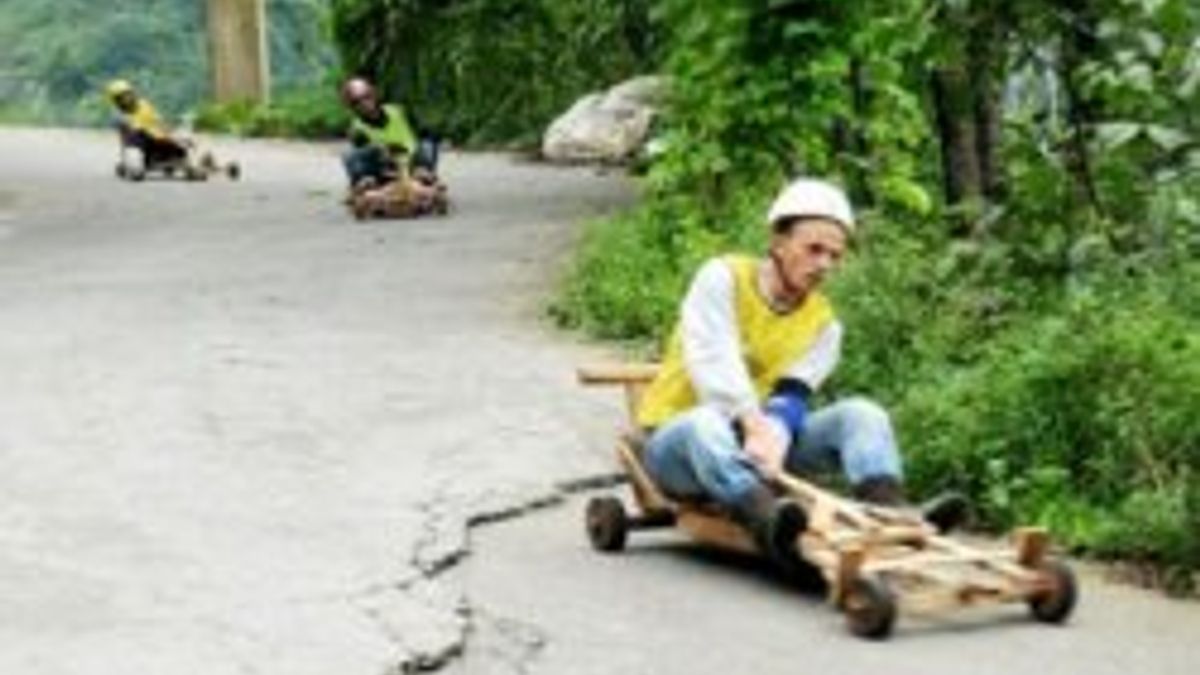 Rize'nin Tunca Beldesi'nde Ramazan Bayramı etkinliği olarak, yörede ‘Formu laz' diye adlandırılan tahta araba yarışı düzenlendi.