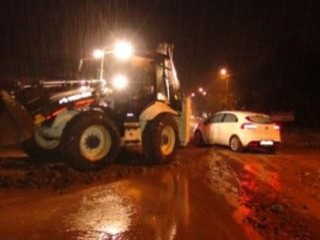Ferizli ilçesi Gölkent Mahallesi'nde de su baskınları meydana geldi. Sokakları sular altında kalan mahallede evinde mahsur kalan bir kişi iş makinesi yardımıyla kurtarıldı.