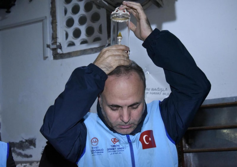 Kimisi de Sakal-ı Şerif'in muhafaza edildiği cam bölmeyi öptü.