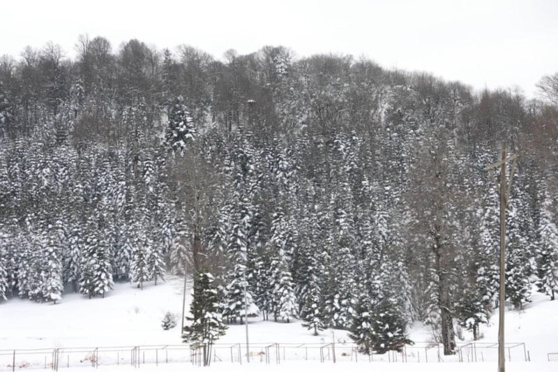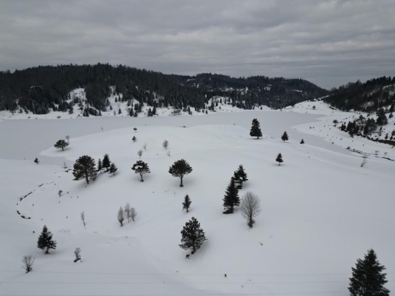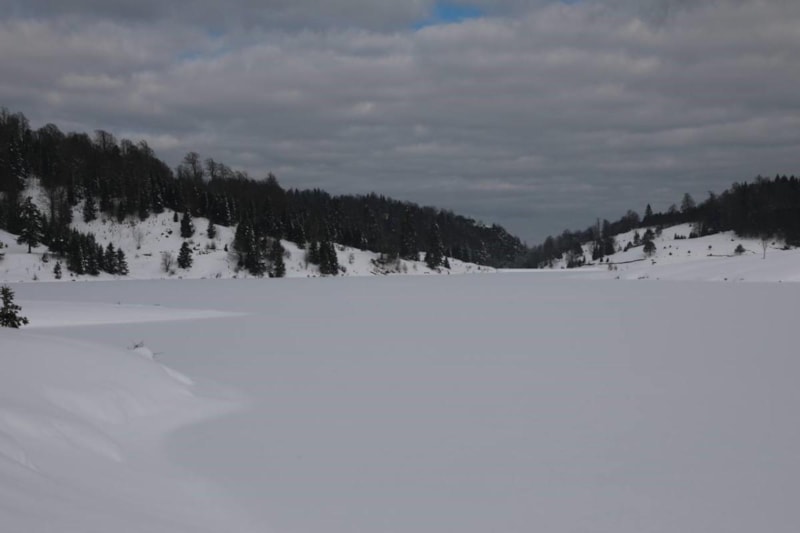 Acelle Yaylası'na geldik ve gölet buz tutmuş. Burasının ilk kez bu şekilde buz tuttuğunu gördüm. Üzerinde yürümek eğlenceliydi.