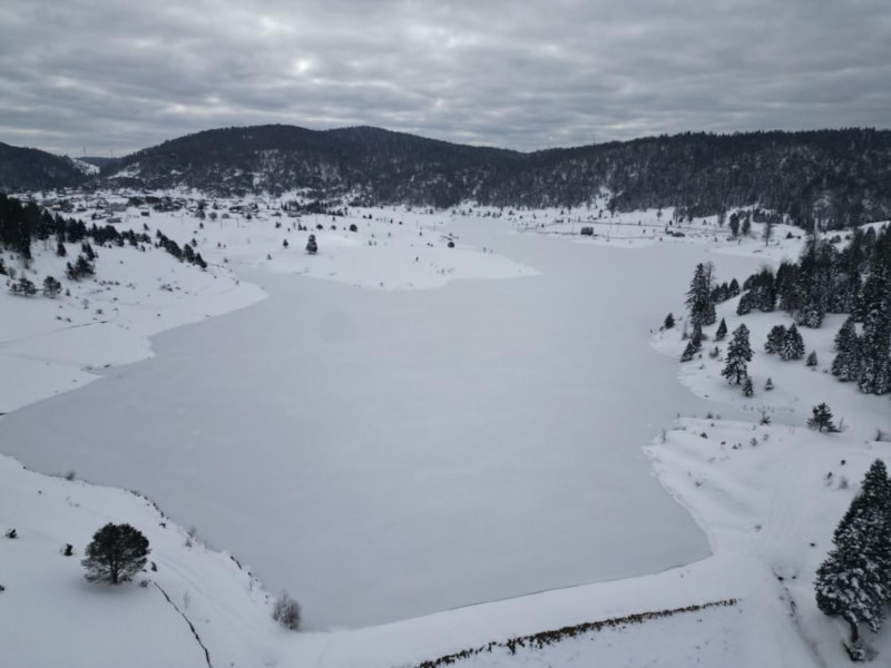Beyaz gelinliğini giyen yaylalarda buz tutan göletlerle birlikte kartpostallık görüntüler ortaya çıktı.
