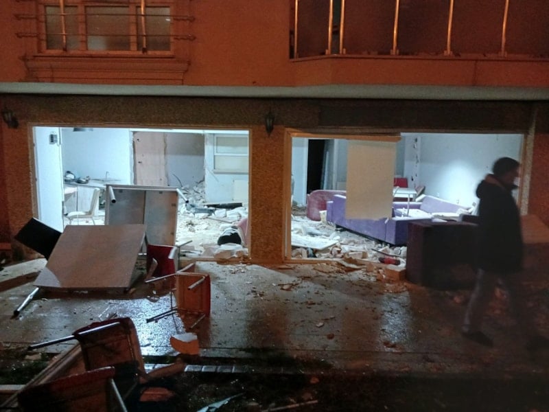 Paniğe sebep olan patlamanın ardından binanın dış çevresinde hasar oluştuğu, bazı camların kırıldığı ve eşyaların binanın dışına savrulduğu görüldü.