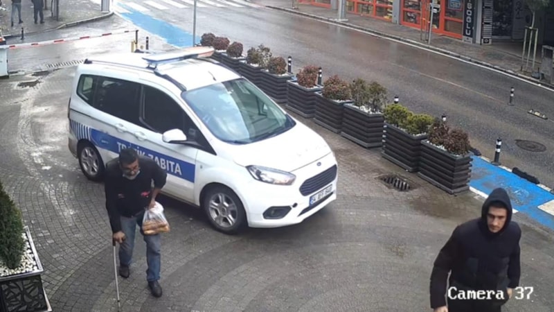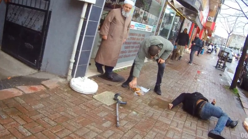 Sakat rolü yaptığı anlaşılan C.G. zabıta ekiplerini görünce elindeki koltuk değneği ile koşarak uzaklaşmaya çalışırken, o anlar güvenlik kamerasına da yansıdı.
