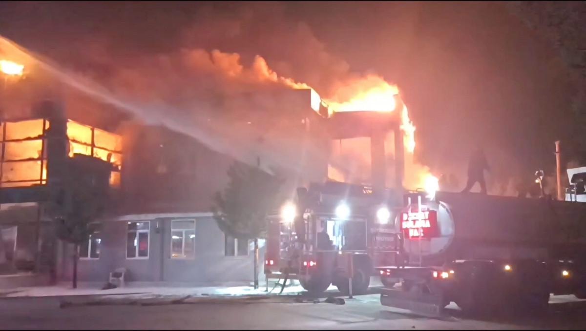 Bilinmeyen bir nedenle çıkan yangın tüm fabrikaya yayıldı.