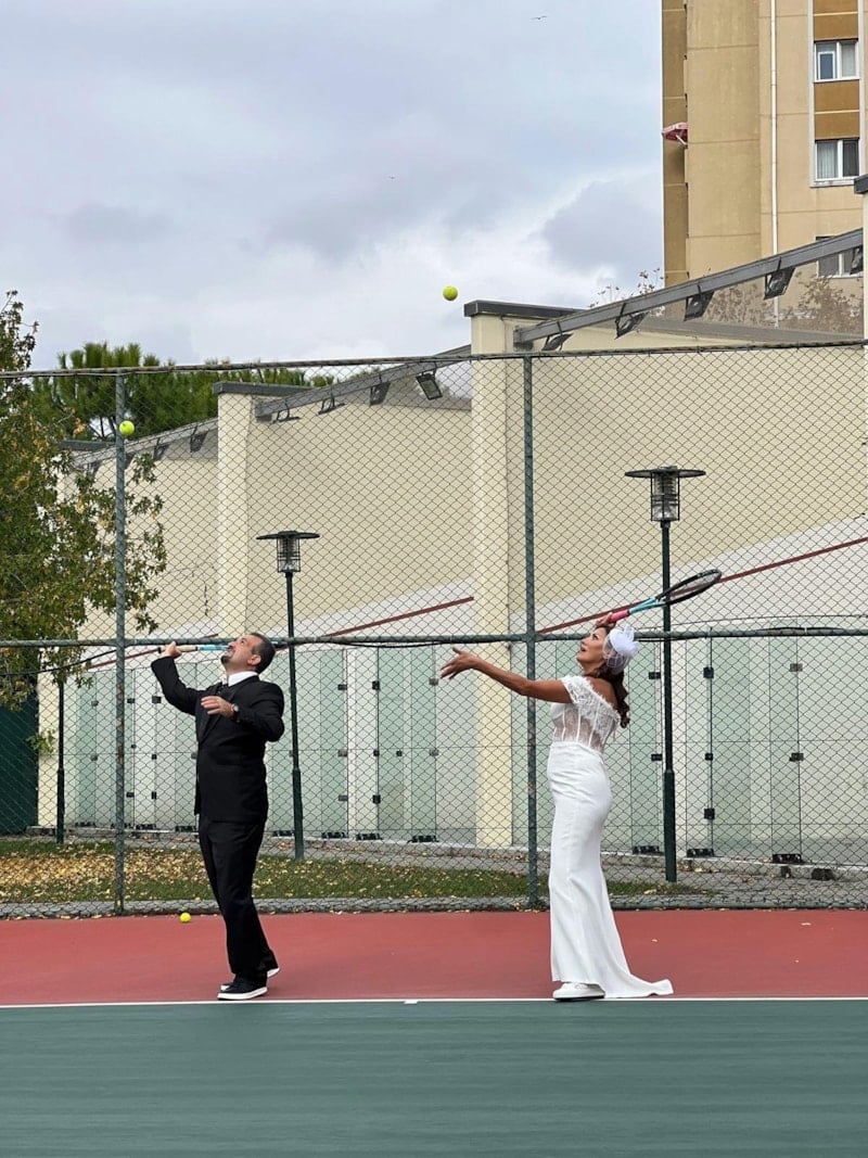 Sharapova ve Çağla Büyükakçay'ın maçına bilet bulamamıştım. Gökhan Bey de turnuvada görevliydi ve bana bilet ayarladı. Tanışmamız bu şekilde oldu. Daha sonra tenis oynamaya başladık. Sakarya'da düzenlenen turnuvada maçımı bitirip kafeteryada oturuyordum. Gökhan'ın sakatlandığını duydum ve panik içinde oraya koştum. Yerde yatıyordu ve çok korktum. Beklemediğim bir anda evlenme teklifi aldım. Tenisle tanışıp sevdiğimiz bu sporda evlenmek, bizim için çok özel bir anıydı. 16 Kasım’da evlendik ve düğün fotoğraflarımızı tenis kortlarında çektirdik, çünkü orası bizim için evimiz gibi.