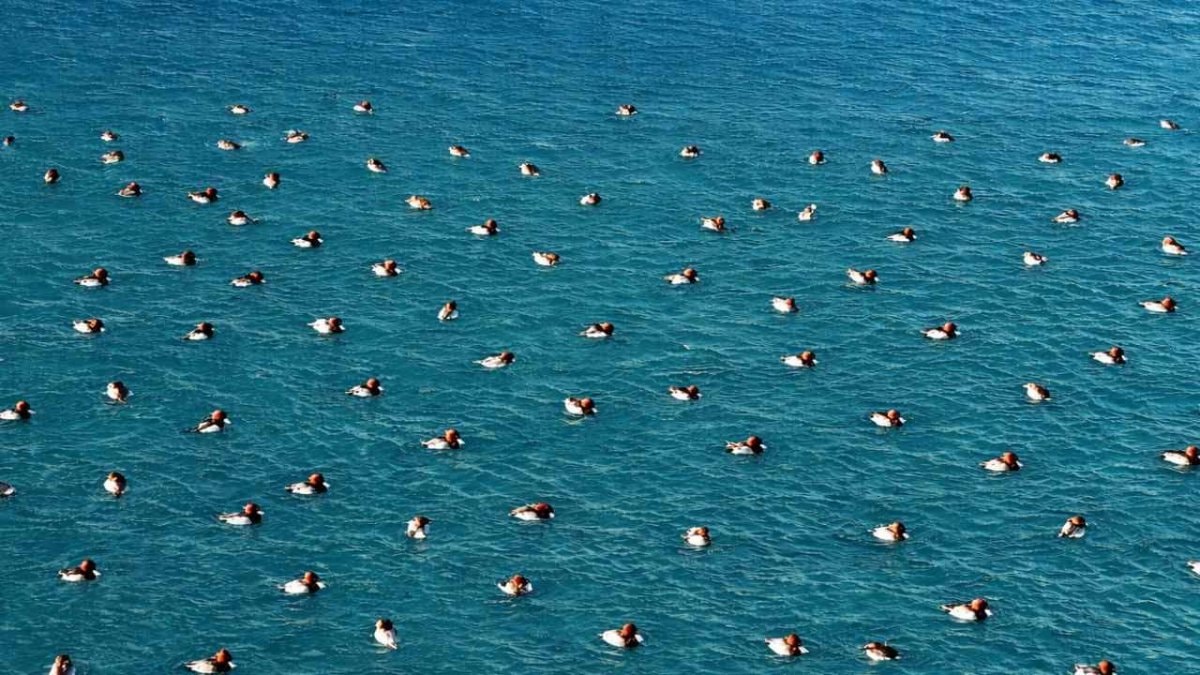 Yüzlerce ördeğin gölde oluşturduğu manzara ise izleyenleri mest etti.