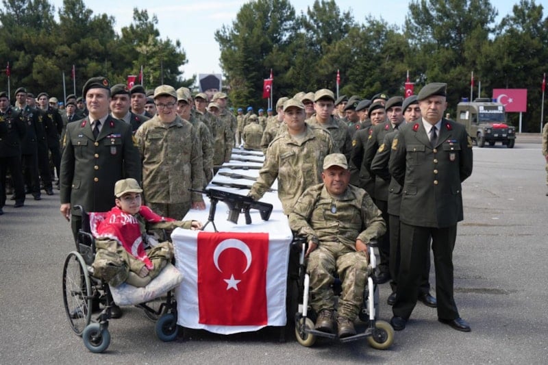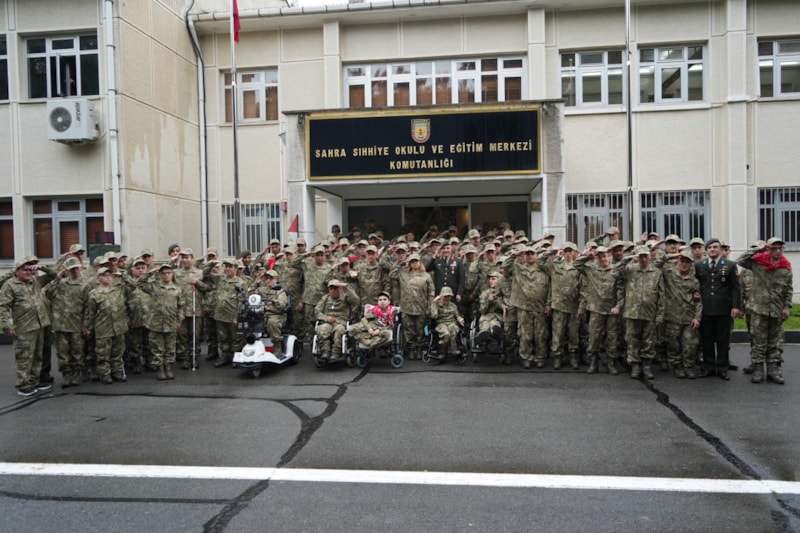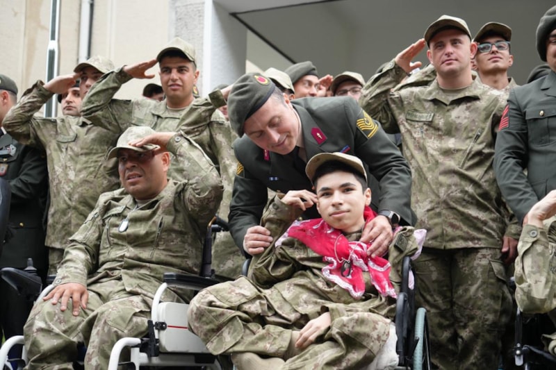 Burada engelli vatandaşlar askeri personel tarafından karşılandı. Karşılama sonrasında engelli vatandaşlara askeri kamuflaj, bot, isimlik ve künye dağıtıldı.