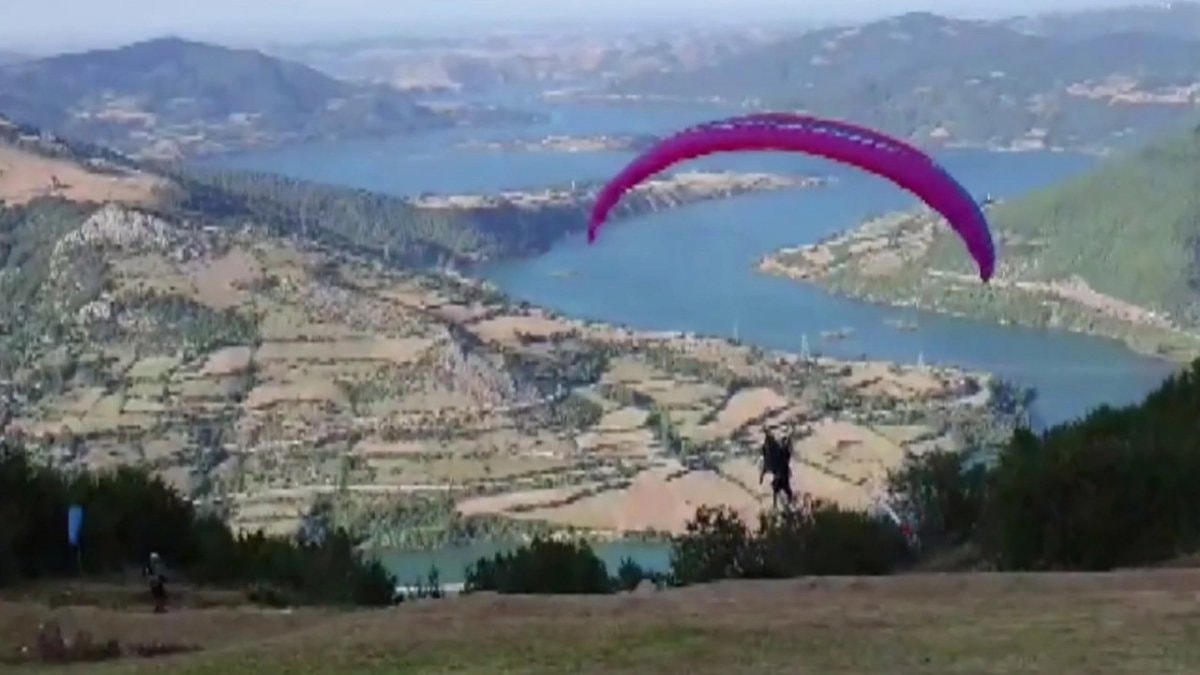 Yamaç paraşütü atlayışı yapan kişi havalandıktan hemen sonra güvenlik ipinden sıyrıldı.