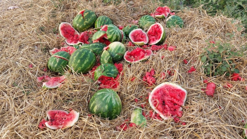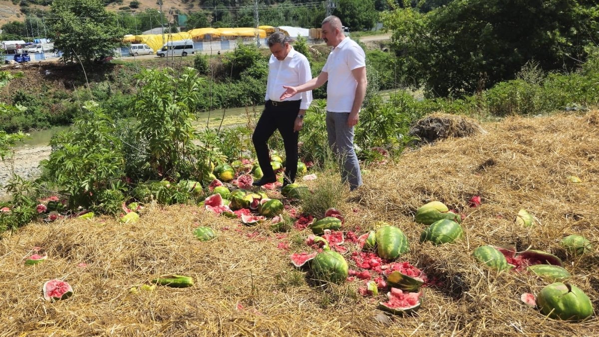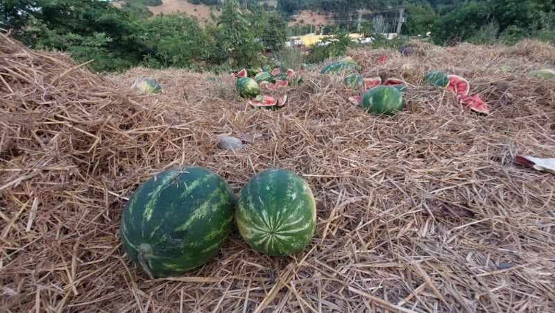 Çevreye saçılan ve kirlilik oluşturan karpuzlar vatandaşların dikkatini çekti. Durumun haber yapılması üzerine yetkililer harekete geçti.