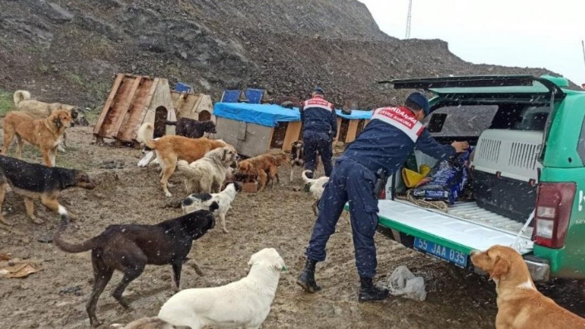 Samsun İl Jandarma Komutanlığı Çevre Doğa ve Hayvanları Koruma Timi, soğuk havalarda sokak hayvanlarını unutmadı.