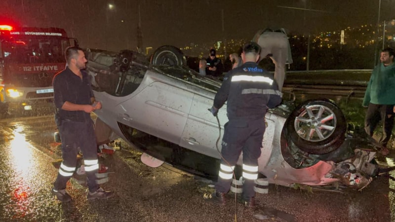 Sürücü ile araçta bulunan 4 kişi kazayı yara almadan atlatırken, otomobilde büyük çapta maddi hasar meydana geldi.
