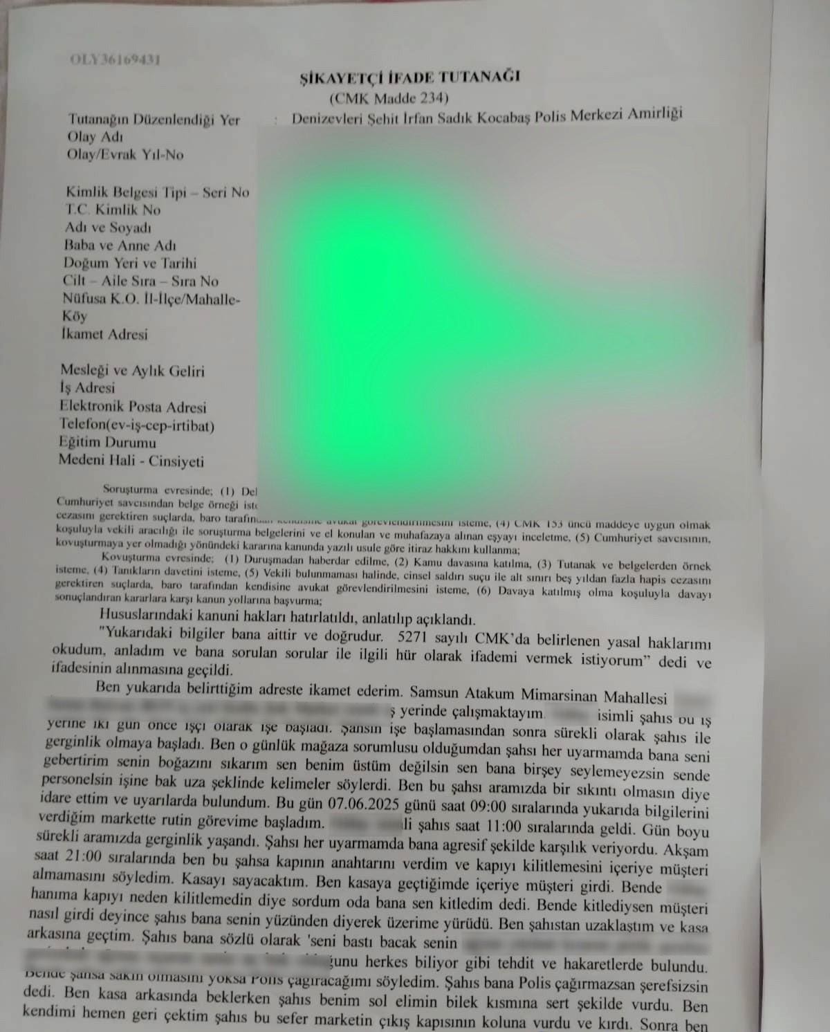 G.Ç.'den şikâyetçi olan E.Ş.'nin ifadesinde, "Yeni başlayan çalışanla sabah saatlerinden itibaren tartışmalar yaşadık. Uyarılarımı dinlemiyor, hakaret ediyordu. Kapanış saati yaklaştığında müşteriler içeri girmesin diye kapıyı kilitlemesini söyledim. Ancak müşteri girince neden kilitlemediğini sordum. Bunun üzerine üzerime yürüyerek hakaret etti, bilek kısmıma sertçe vurdu. Ardından marketin çıkış kapısının kolunu kırdı" dediği öğrenildi.