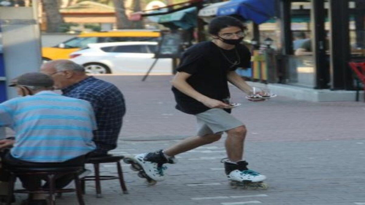 Yaz aylarında para kazanmak için çalıştığını belirten Meral, “Patenle daha hızlı çay dağıtıyorum. Bu durum müşterilerin de hoşuna gitmeye başladı. 3 aydır bu şekilde hizmet veriyoruz” dedi.