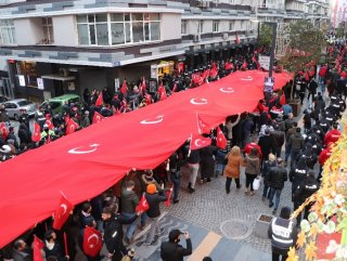 Yürüyüşe katılanlar, ellerindeki Türk bayrakları ile ’Şehitler Ölmez Vatan Bölünmez’, ’İntikam’ şeklinde sloganlar atarak İdlib’deki saldırıyı kınadı.