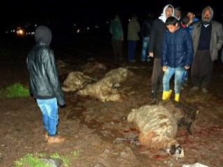 Siverek ilçesinde minibüsün çarptığı 20 koyun telef oldu.