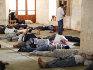 Şanlıurfa'da oruçlu vatandaşlar namaz kılmak için gittikleri Hasan Paşa Camii'nde yorgunluklarını şekerleme yaparak attı. Camii'de yere yatarak uyuyan vatandaşlar ilginç görüntüler sergiledi.