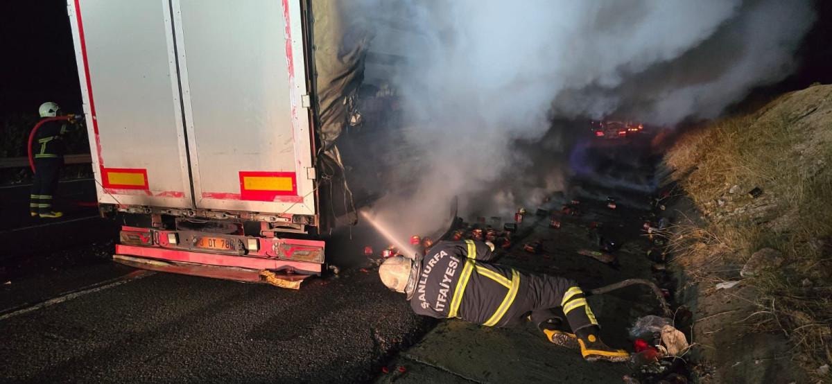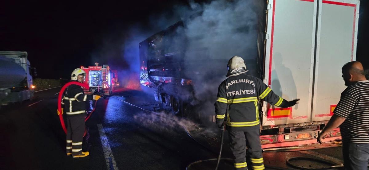Şanlıurfa'da gece saatlerinde Haliliye ilçesine bağlı Örencik Mahallesi yakınlarında henüz sürücüsü belirlenemeyen 27 Y 4893 plakalı tır, seyir halindeyken dorsesinden yükselen dumanlar nedeniyle emniyet şeridine alındı.