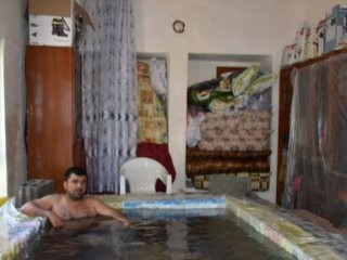 Hava sıcaklıklarının 60 dereceyi bulduğu Şanlıurfa'da bunaldığını belirten 36 yaşındaki Haşim Kılıçoğlu, "Burası benim evimin bir odasıdır. Hilvan'da boyacılık mesleği ile ilgileniyorum. Öğleden sonra hava çok sıcak oluyor. Benim başka tarafa gitme lüksüm yok. Düşündüm taşındım inşaat briketi ve muşamba aldım. Evimin bir odasına havuz yaptım ve altına halı serdim. Sıcağa dayanamadım. Kendi çabamla inşaatta yapılan havuzu kendi evimin odasına yaptım. Herkese tavsiye ederim. Ben yaptım, çok memnunum. Biz Antalya'ya, Marmaris'e, Muğla'ya gidemiyoruz. Kendi evimizin içine, odamıza havuz yaptık." dedi.