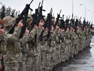 Sarıkamış 9'uncu Komando Tugay Komutanlığı'na bağlı askerler, sınır ötesi yolculuğuna çıkmak için havalimanına geldi. Komando Marşı'nı okuyan askerler, daha sonra 2 askeri uçakla Şanlıurfa'ya hareket etti.