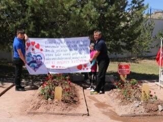 Hakkari'de teröristlerin saldırısında 10 aylık bebeğiyle şehit olan Nurcan Karakaya’nın eşi Astsubay Çavuş Serkan Karakaya, eşinin doğum gününü mezarı başında açtığı duygu yüklü pankartla kutladı.