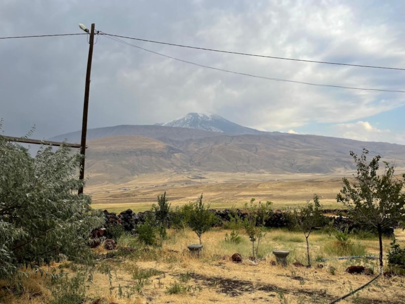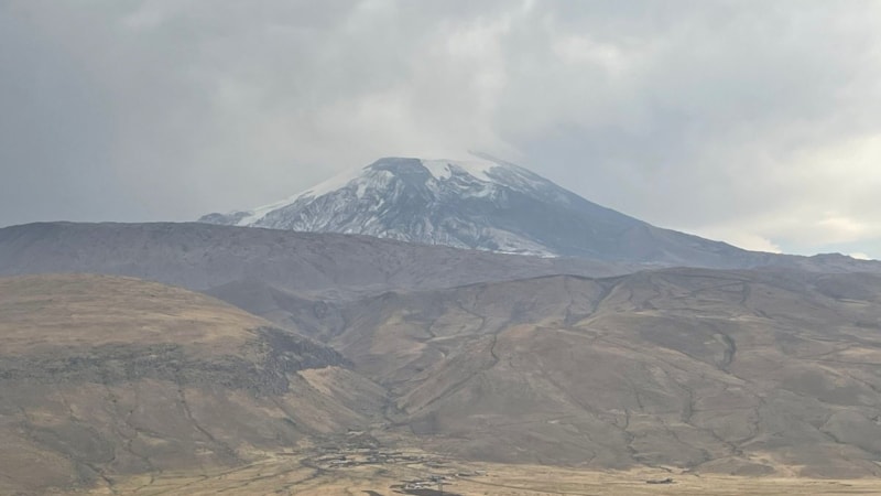 Iğdır’ın Karagüney köyünde kaydedilen görüntülerde, Ağrı Dağı'nın yaz aylarında eriyen yamaçlarının yeniden beyaz örtüyle kaplandığı görüldü.