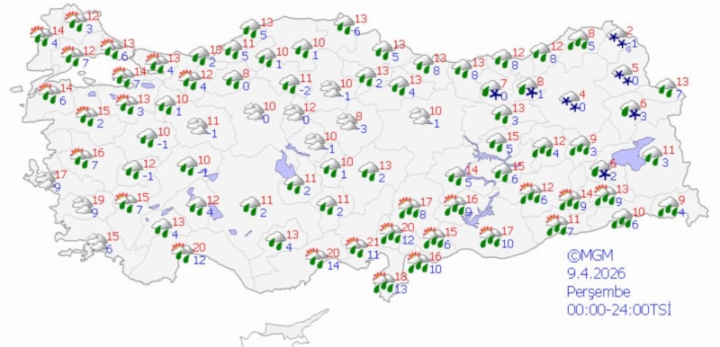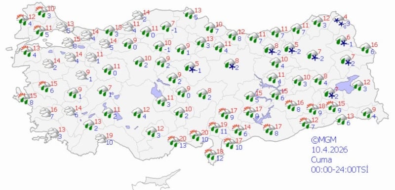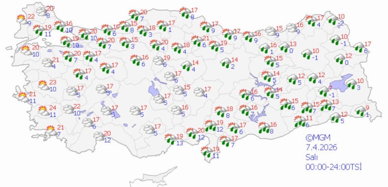 Güney ve batı kesimlerde 20-24 dereceye varan değerler görülürken, doğu bölgelerinde 10-17 derece bandında kalacak.