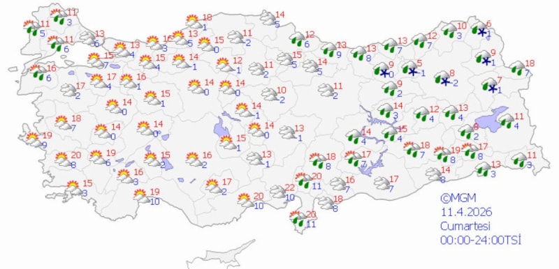 Doğuda yağmur ve yer yer kar, batıda ise güneşli ve parçalı bulutlu bir hava öngörülüyor.