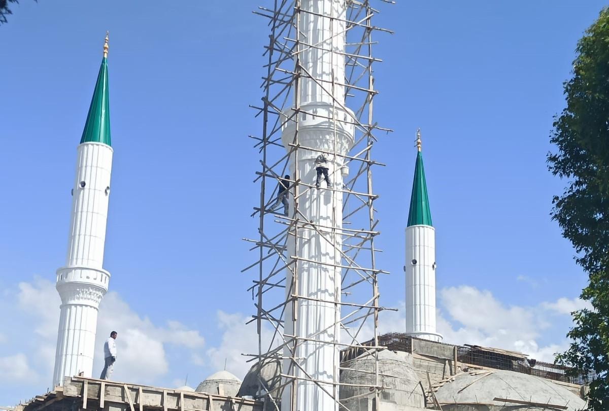 Siirt'in Baykan ilçesinde bağlı Veysel Karani beldesinde yapımı devam eden yaklaşık 15-20 metre yükseklikte bir cami inşaatın çalışan işçilerin kalastan yaptıkları iskeleye gerekli güvenlik önlemi almadan çıkmaları, görenlerin yüreğini ağzına getirdi.