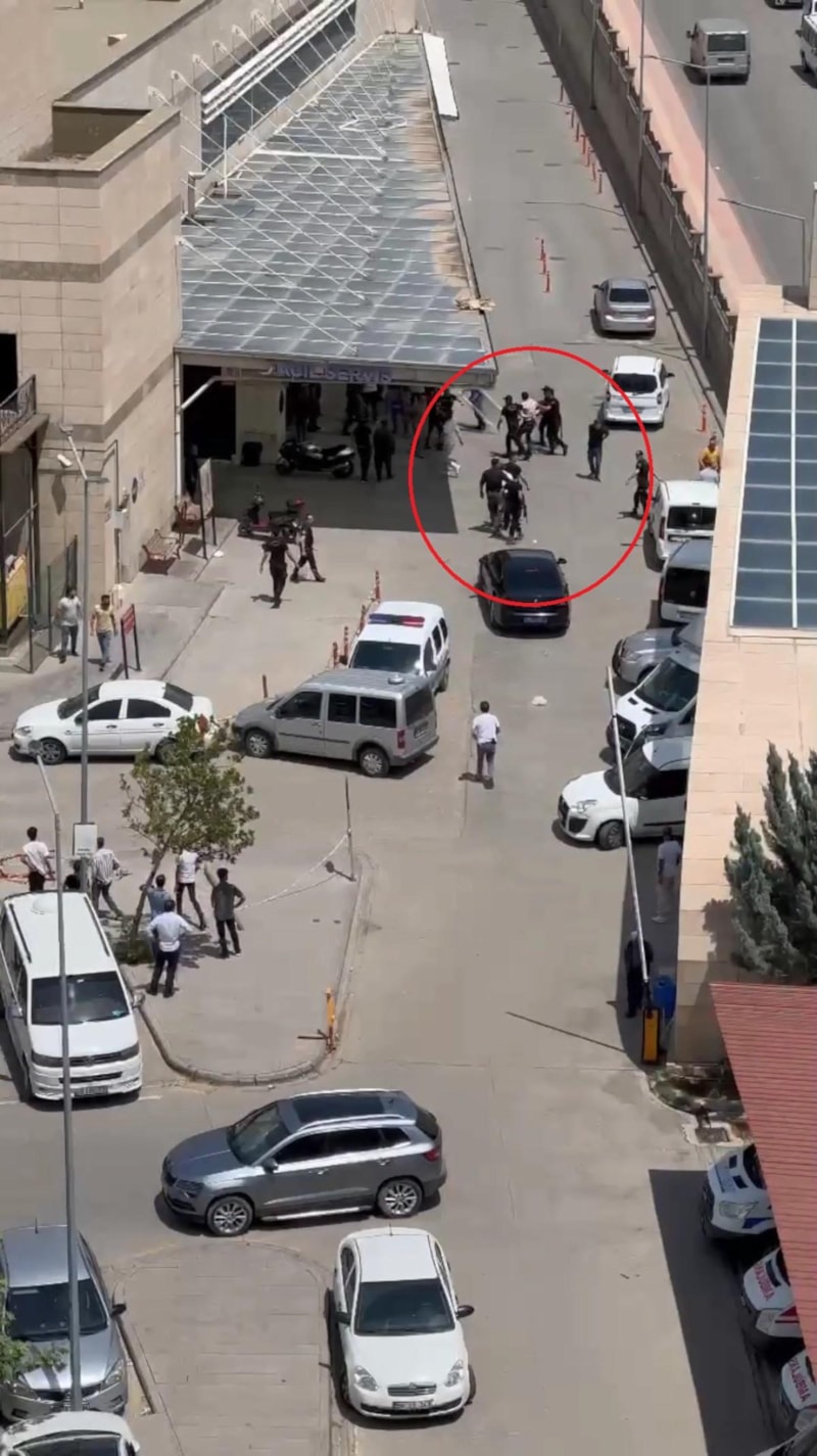 Hastane önünde karşılaşan yaralı yakınları arasında tekrar kavga çıktı. Burada önlem alan polis ekipleri, havaya uyarı ateşi açıp, kavga edenlere biber gazıyla müdahale etti.