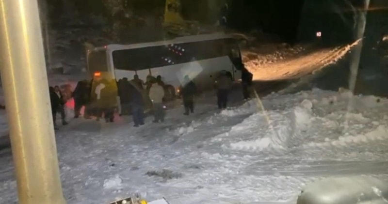 Yolda kalan cenaze otobüsü ve hastalar, ekiplerin yoğun çalışmasıyla güvenli şekilde kurtarıldı.