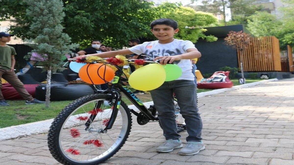 Berat Ali'yi daha önce süsledikleri bir kafeye götüren gençler, burada doğum gününü kutlayıp hayalindeki bisikleti hediye etti. Kafenin bahçesinde süslenmiş bisikletle tur atan çocuğun sevinci yüzüne yansıdı.