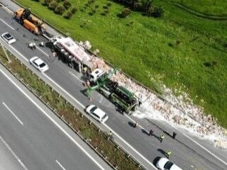 Kaza, TEM otoyolu Silivri Kınalı mevkiinde meydana geldi. İddiaya göre, Büyükçekmece istikametine seyreden un yüklü tır sürücüsü, bir anda direksiyon hakimiyetini kaybetti.